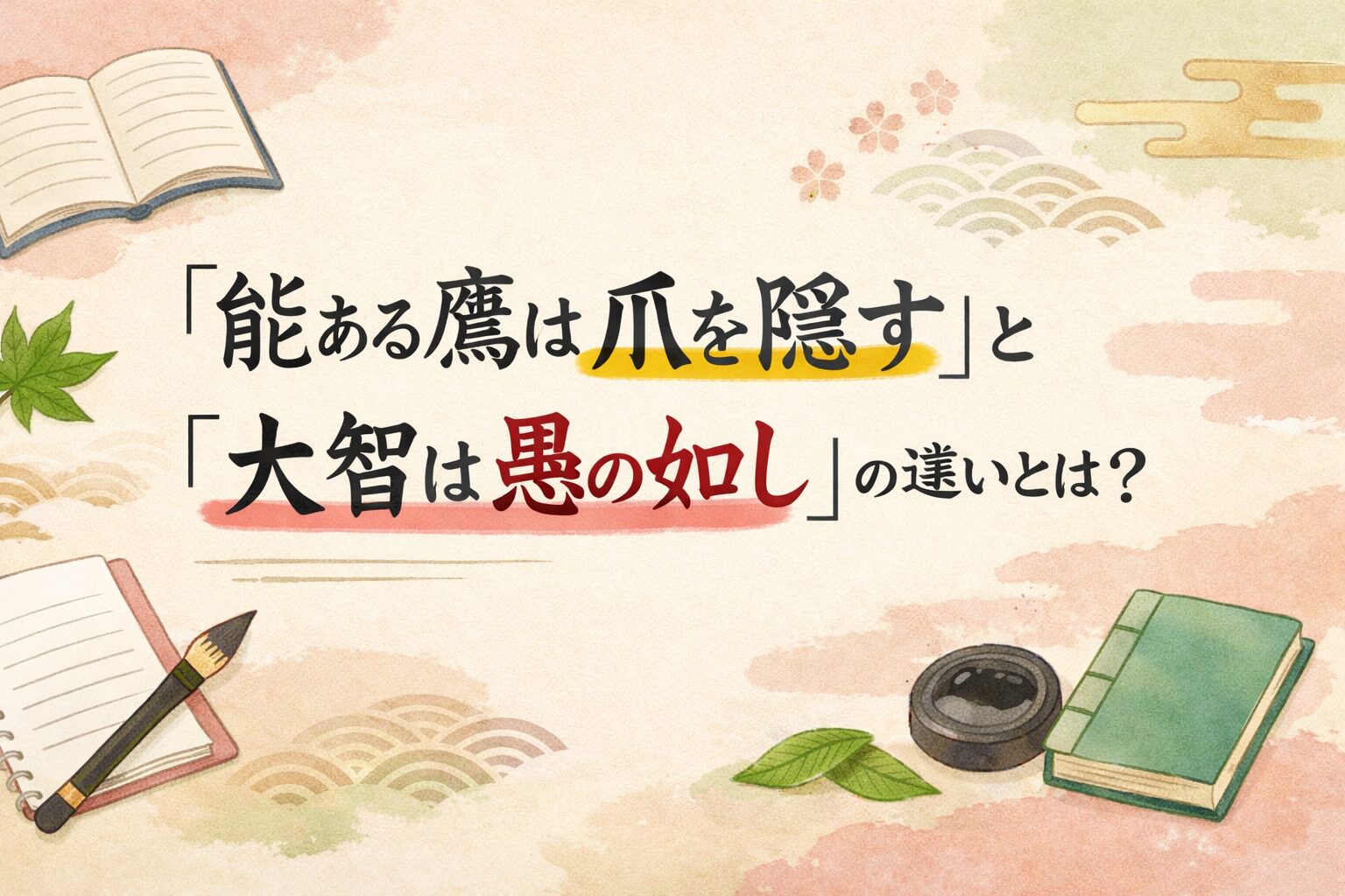 鷹=実力を隠す大智=賢さが目立たない。この形で覚えるだけでも、かなり使いやすくなります。さらに、日常の人物に当てはめてみると定着しやすくなります。静かな実力者には前者、控えめで思慮深い人には後者。この対応が頭に入っていれば、会話でも文章でも迷いにくくなるはずです。